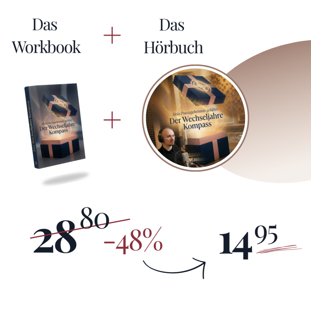 Der „Wechseljahre Kompass“ zeigt dir den Weg aus der Erschöpfung, hin zu neuer Power, Fokus und echter Lebensqualität in deiner zweiten Lebenshälfte.
